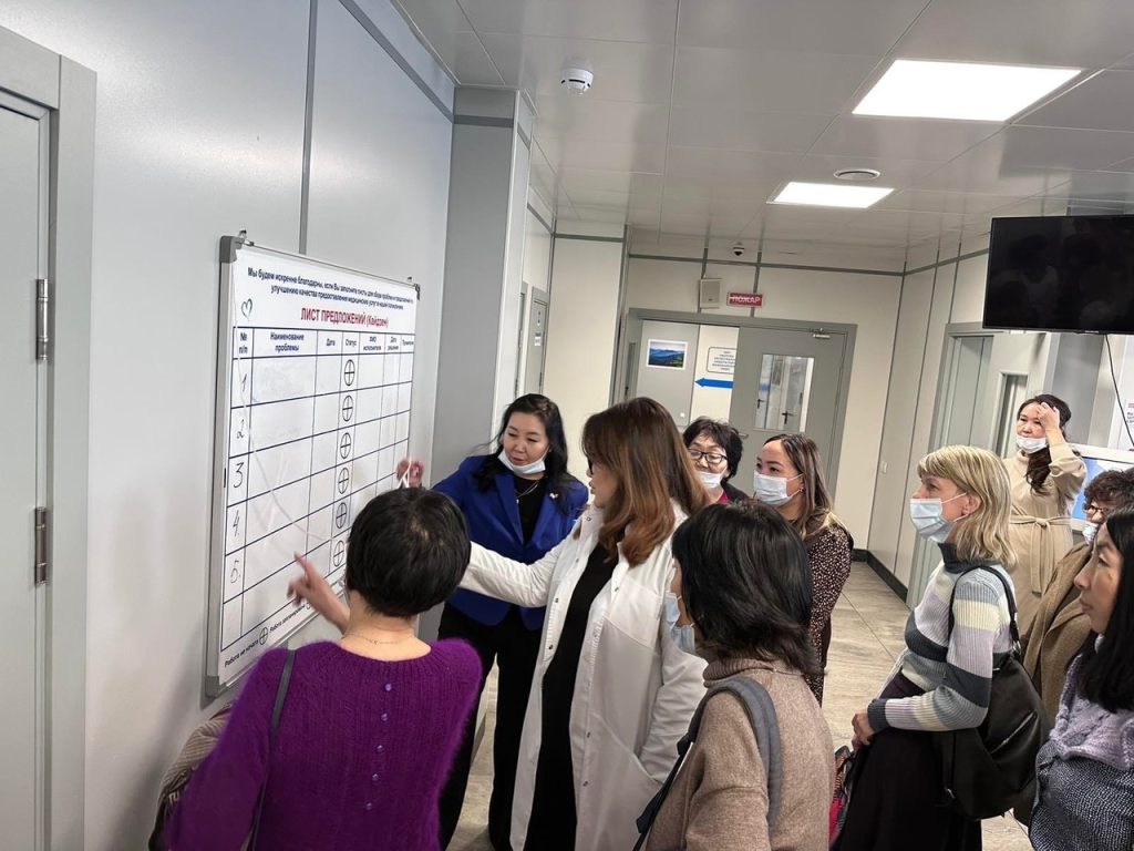 Конференция завершилась экскурсией в Республиканский консультативно-диагностический центр по ул. Бай-Хаакская, 14 Б, где преподавателей тепло встретила и любезно провела экскурсию заместитель главного врача по организационно-методической работе Аржаана Леонидовна. Она показала кабинеты, рассказала, как у них идет внедрение инструментов бережливого производства.