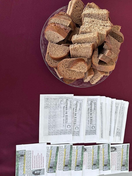 В конце классного часа студентам выданы кусочки хлеба по карточкам, как символ того времени.