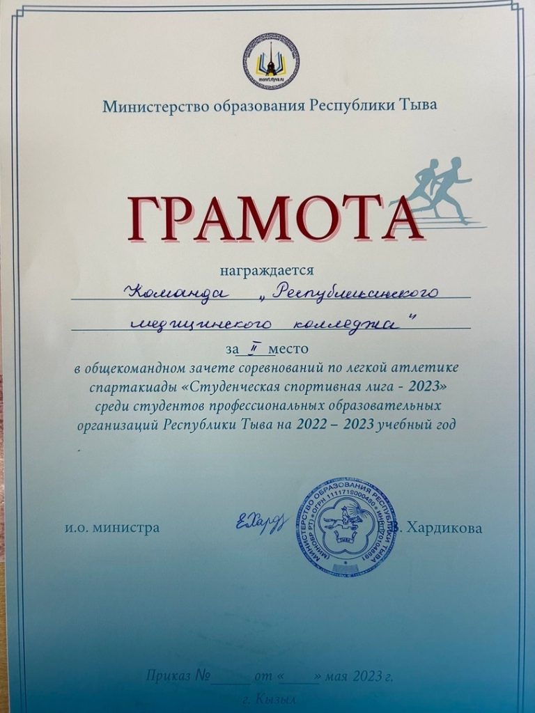 В эстафетном беге наши студенты Бараан Айдына,Сотпа Менги, Биче-оол Виктория, Сендажы Ангыр стали бронзовыми призерами.