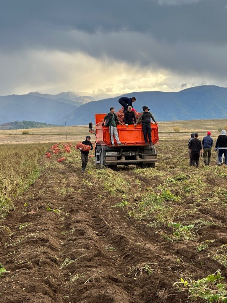 Вот уже на протяжении нескольких дней в СПОК «Земля надежды», что находится в Тандинском кожууне, уборка урожая картофеля идет полным ходом. Студенты разных СПО дружно и сплоченно выезжают, собирают в мешки картофель.