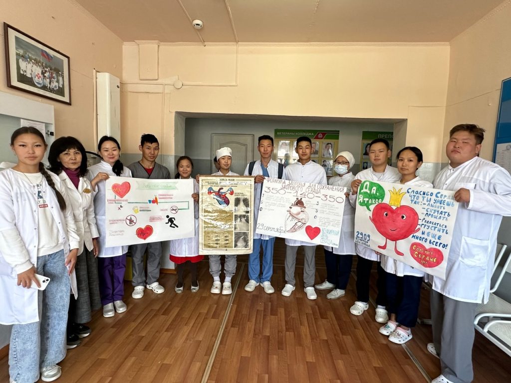 Студенты-медики в рамках занятий по педиатрии под руководством преподавателя Базыр-Тараа Руфины Васильевны нарисовали стенгазеты и плакаты на тему «Формула здоровья для сохранения здорового сердца», приуроченный Всемирному Дню сердца.