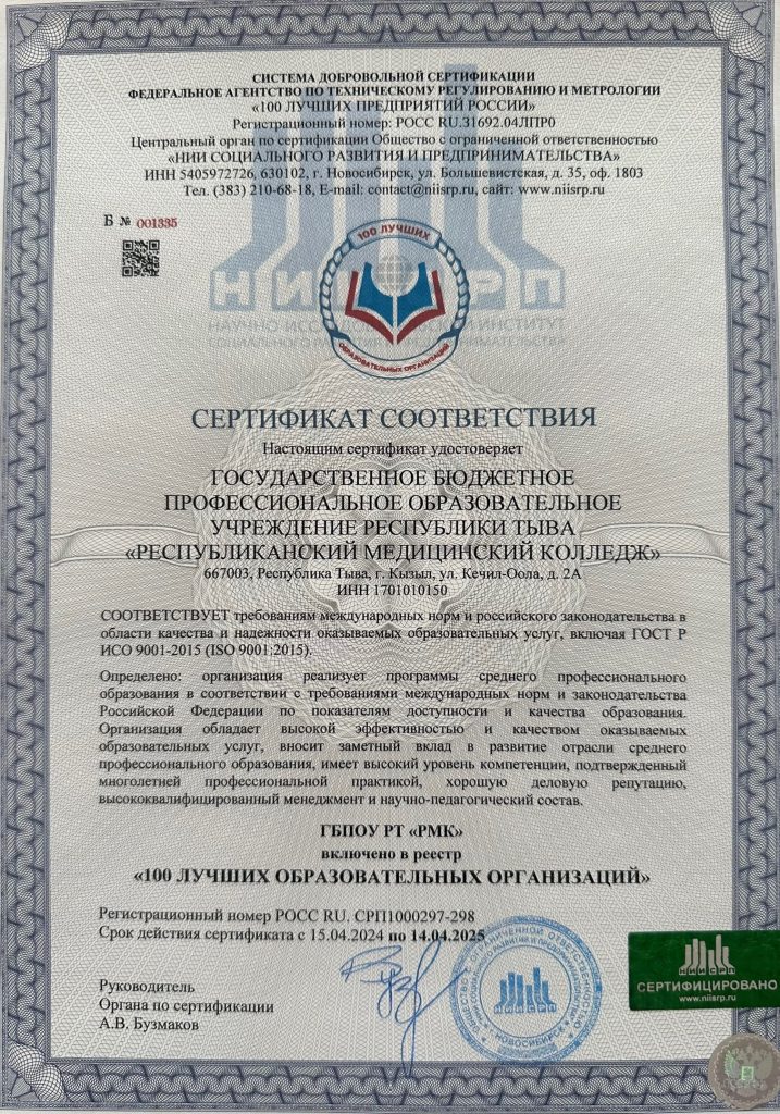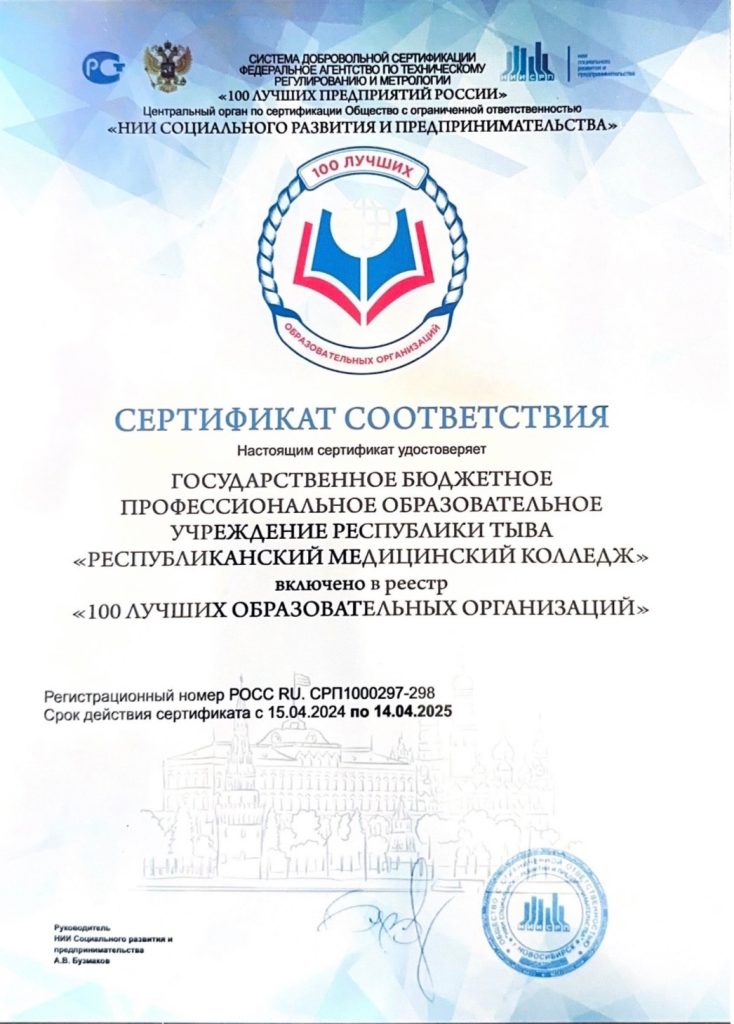 ГБПОУ РТ «Республиканский медицинский колледж» показал высокое качество образования среди профессиональных образовательных организаций на территории Российской Федерации, приняв участие во Всероссийском публичном конкурсе и попав в федеральный реестр «100 лучших образовательных организаций РФ-2024».