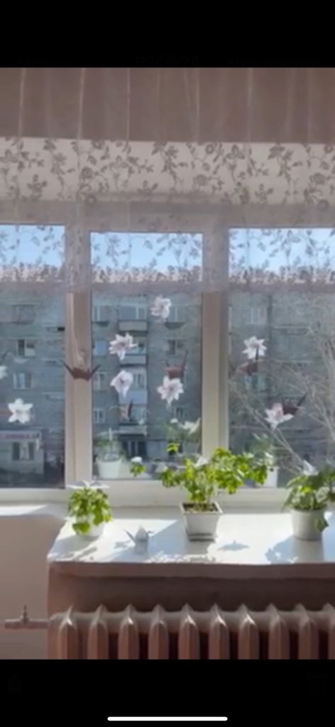Студенты своими руками сделали белых журавлей и приклеили к окнам колледжа, еще изготовили оригами цветка крокуса, символизирующего надежду и возрождение.
