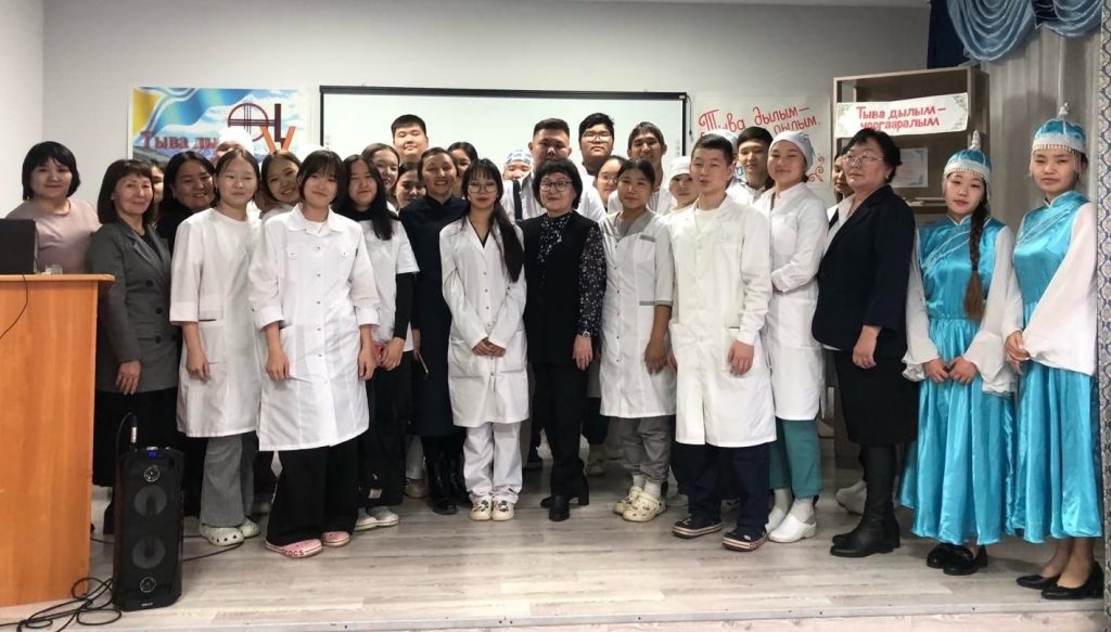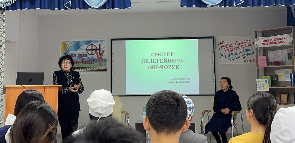 в Республиканском медицинском колледже состоялась интересная встреча с кандидатом филологических наук, доцентом кафедры тувинского языка ТГУ, директором Института развития национальной школы Еленой Мандан-ооловной Куулар и младшим научным сотрудником лаборатории филологии этого же института Чочагай Орлановной Хомушку.