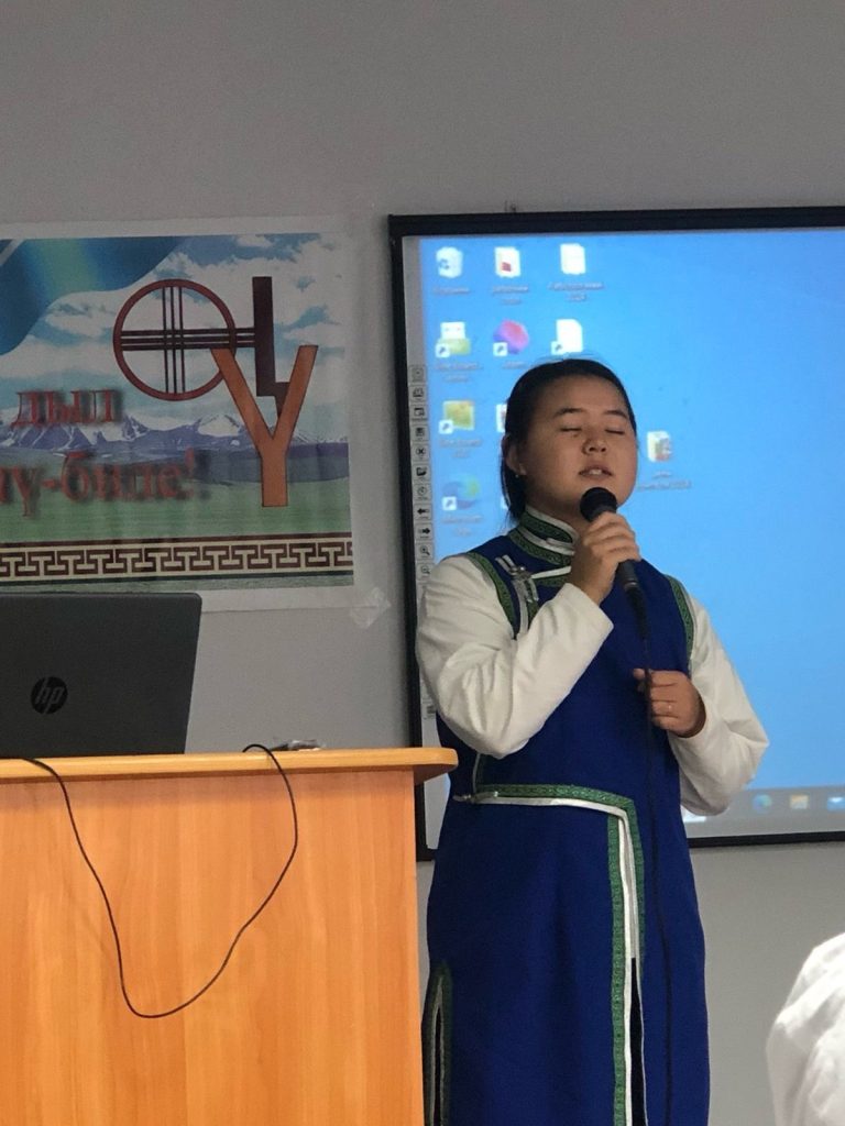 В завершении встречи студенты продемонстрировали выразительное чтение стихотворений известных тувинских писателей: Александра Даржая «Тыва дылым» (в переводе «Мой тувинский язык») и Степана Сарыг-оола «Херээжен», посвященного матери.