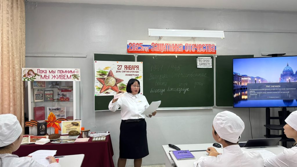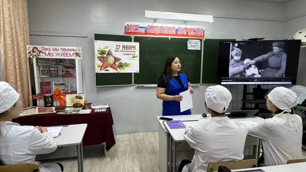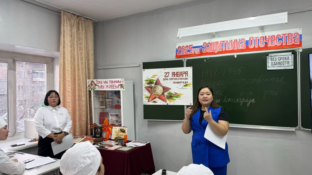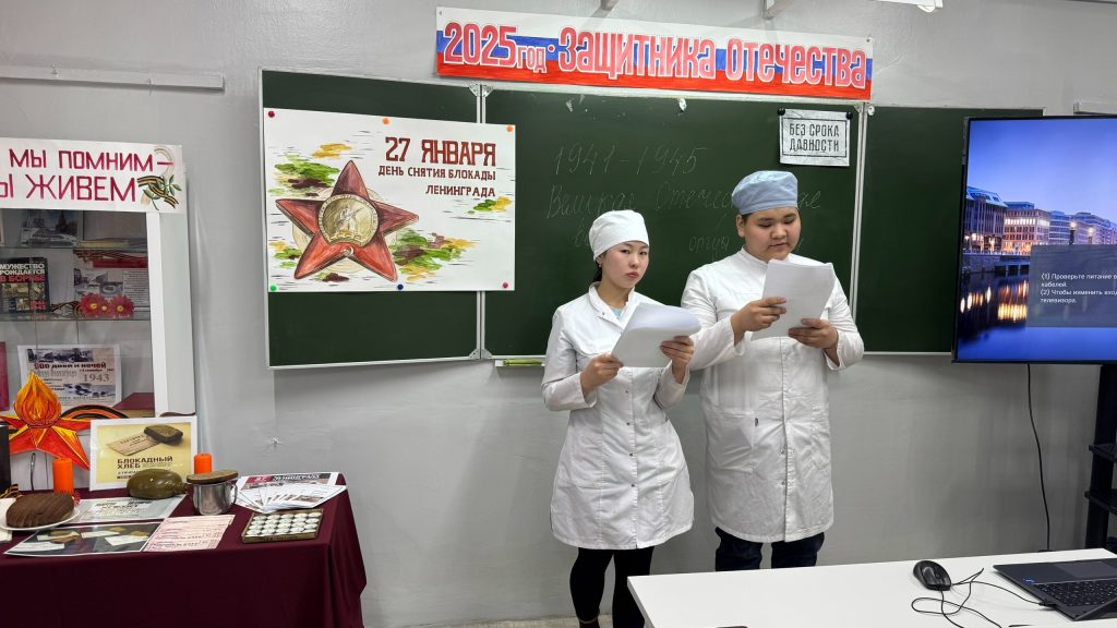 Оборона города на Неве стала символом беспримерного мужества и силы духа советского народа.Советник директора по воспитанию Чинмит-оол С.Д. и преподаватель истории Лама Ч.Д. у 1 курса 8 группы Сестринское дело провели мероприятие, приуроченное Дню полного освобождения Ленинграда от фашистской блокады.