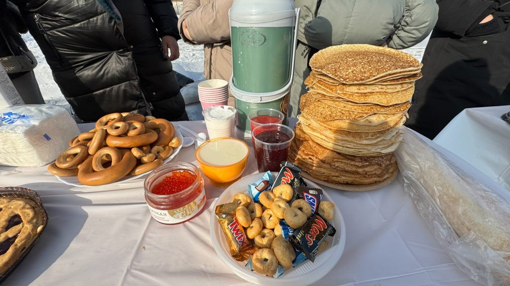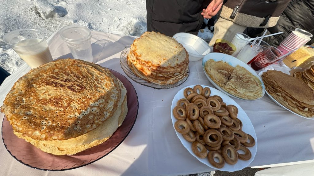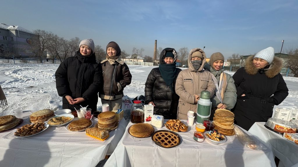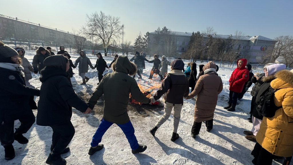 На спортивной площадке студенты 1 курса специальности Акушерское дело организовали традиционные масленичные гуляния: с блинами, веселыми конкурсами, хороводами.