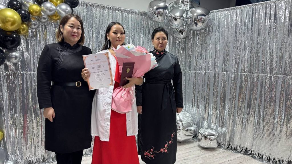 После того, как все выпускники получили заветные дипломы, под руководством главной акушерки Перинатального центра Кристины Михайловны Ондар студенты произнесли клятву медицинского работника.