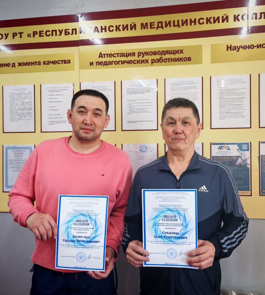 Подведены итоги межрегионального заочного конкурса учебно-методического обеспечения по учебному предмету/дисциплине «Физическая культура» среди педагогических работников Сибирской межрегиональной Ассоциации работников системы СПО медицинского образования. Среди победителей — педагоги ГБПОУ РТ «Республиканский медицинский колледж». Дипломом I степени в номинации «Методическая разработка практического занятия для преподавателя» удостоен преподаватель Сендажы О.К. , дипломом II степени в номинации «Методическая разработка внеаудиторного занятия» награжден инструктор Белек-оол С.В. Поздравляем коллег и желаем им дальнейших успехов в педагогической деятельности!