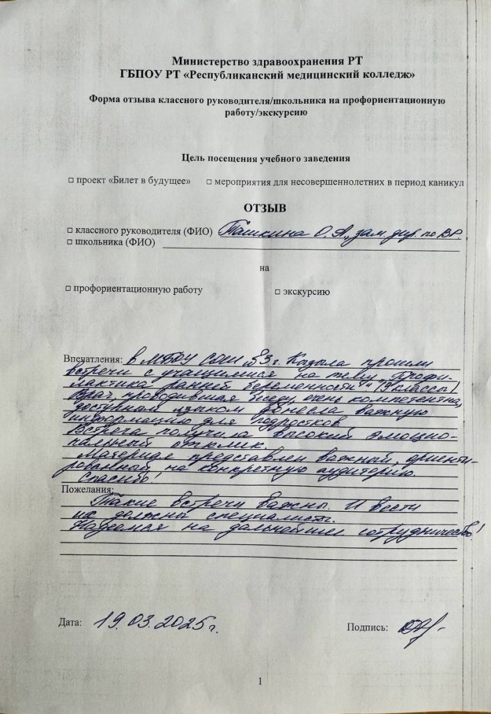 На встрече обсудили последствия ранней беременности для здоровья и будущего молодых людей, ознакомили учащихся с фактами о методах контрацепции, также озвучена статистика о подростковой беременности и абортах за 2023-2024 гг.