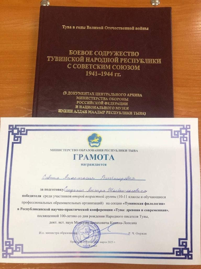 Сегодня в центре одарённых детей «Сылдысчыгаш» прошла научно-практическая конференция «Тува: древняя и современная», посвящённая 100-летию со дня рождения доктора исторических наук, этнографа-востоковеда, шамановеда, народного писателя Тувы Монгуша Бораховича Кенин-Лопсана!Среди участников второй возрастной группы на секции «Тувинская филология» победителем стал Сендажы Ангыр — студент отделения «Лечебное дело». Поздравляем нашего выпускника с победой!Благодарим педагога-библиотекаря Савину А. В. за помощь и поддержку талантливого студента!