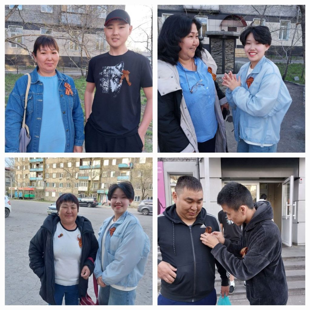 В 2025 году она особенно значима: мы отмечаем 80-летие Победы в Великой Отечественной войне 1941–1945 гг.05 мая воспитатели общежития Оюн М.А. и Салчак Р.А. провели для студентов беседу на тему «Мы помним, мы гордимся!», где познакомили студентов с историей возникновения Георгиевской ленточки, рассказали о том, что эта лента вручалась достойному за военные подвиги, в которых человек проявил героизм, мужество, храбрость.