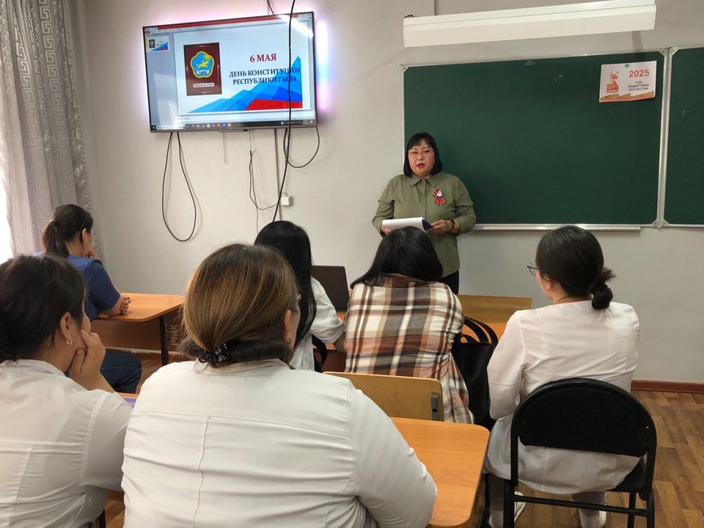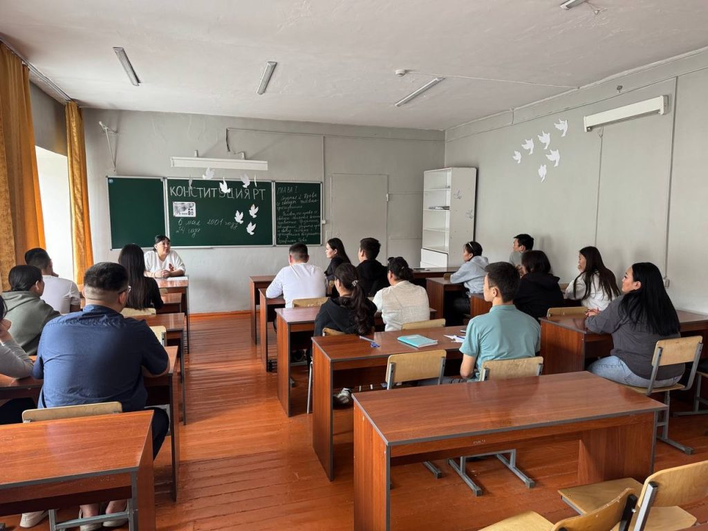 В студенческом общежитии воспитателями Салчак Р.А. и Оюн М. А. с целью воспитания студентов любви к родине, гордости за свое государство, углубления кругозора проведен информационный час и викторины по теме: «День Конституции Республики Тыва».