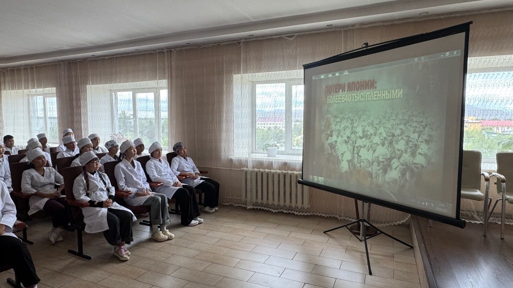 В Республиканском медицинском колледже преподаватель истории Лама Ч.Д. и советник директора по воспитанию Чинмит-оол С.Д. провели мероприятие «Подвиг народа» для студентов 1 курса 7 группы специальности 34.02.01 Сестринское дело.