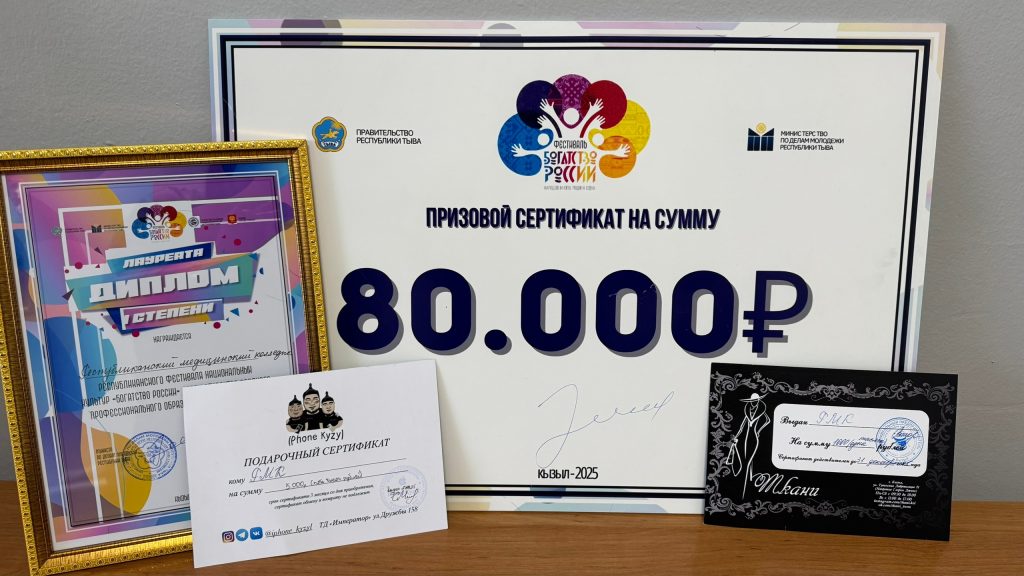 В Доме народного творчества состоялся масштабный фестиваль национальных культур «Богатство России».Мероприятие объединило более четырехсот студентов из девяти образовательных учреждений среднего профессионального образования. Студенты с энтузиазмом представили культуру самых разных народов, проживающих в России, продемонстрировав не только их уникальность, но и крепкую дружбу и сплоченность. Фестиваль стал настоящим калейдоскопом традиций, музыки и танцев, подчеркнув многообразие культур и красоту нашей страны.Творческая группа РМК воплотила образ Бурятии, края, где теплое золотистое солнце освещает заснеженные горы и уникальную культуру Байкала, создавая гармоничное единство. Они представили зрителям и жюри красивую легенду о Байкале и его единственной дочери Ангаре.По решению жюри Республиканский медицинский колледж удостоен диплома 1 степени и награжден сертификатом на сумму 80.000 рублей.Поздравляем студентов, принявших участие в фестивале культур, а также Баяну Александровну и Эреса Борбак-ооловича — с заслуженной победой!
