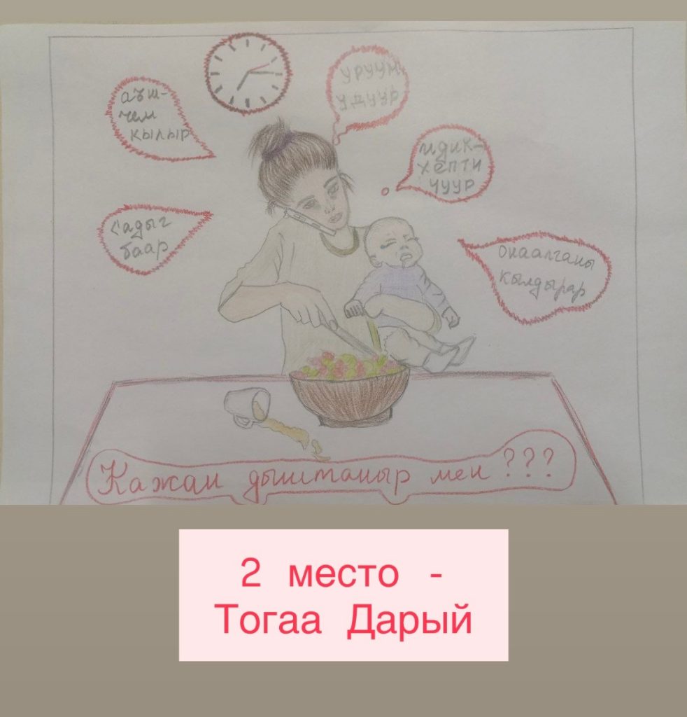 2 место – комикс «Кажан дыштаныр мен» студентки 1 курса Республиканского медицинского колледжа Тогаа Дарый;