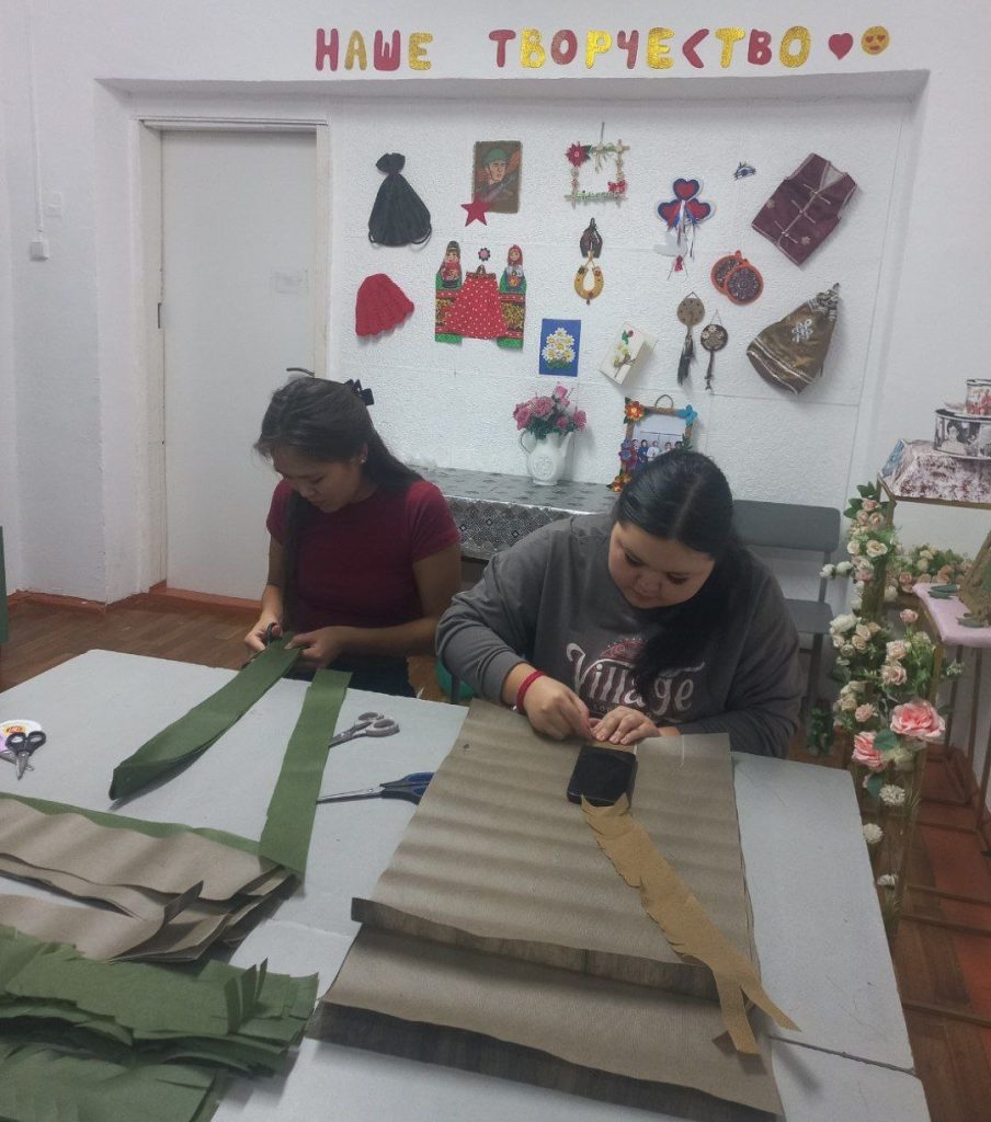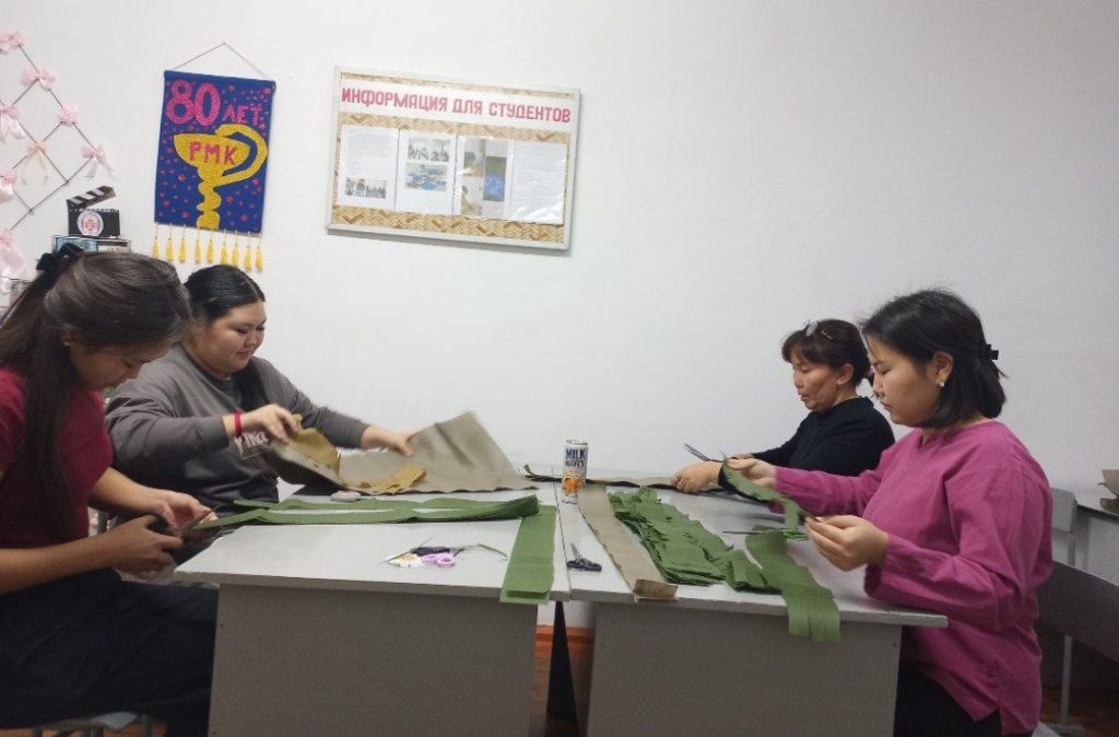 Студенты, проживающие в общежитии под руководством воспитателя Кужугет Н.Б., активно сотрудничают с Этноковоркингом «Центр Азии» в Центре русской культуры. Ежемесячно они занимаются плетением маскировочных сетей и помогают в пошиве необходимых элементов военной экипировки, таких как пояса и жилеты. Девушки-мастерицы также берут на себя написание и отправку писем нашим защитникам.