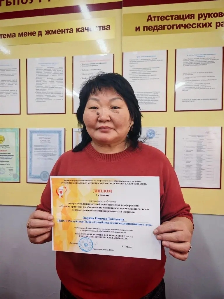 Преподаватель Республиканского медицинского колледжа, Ооржак Оюнмаа Тойлуевна, представила статью на тему: «Создание условий для личностного роста и мотивации медицинских работников». Её работа была отмечена дипломом 1 степени! Преподаватель Ооржак Диана Семеновна со статьей «Применение виртуальных симуляторов в процессе подготовки медицинских работников» получила сертификат участника,