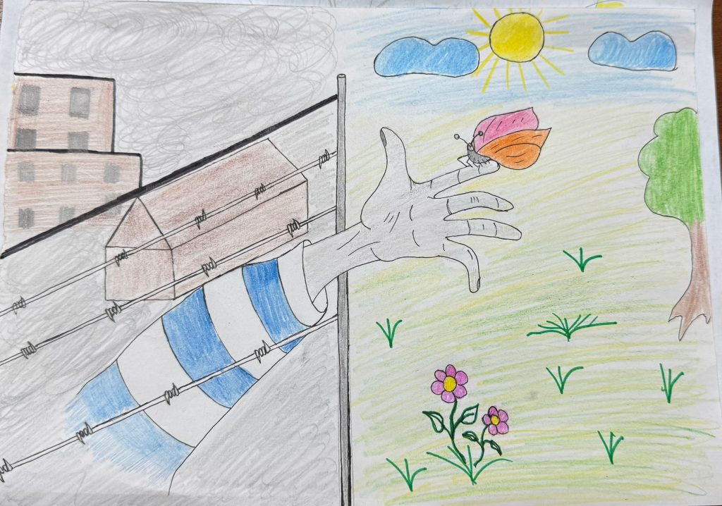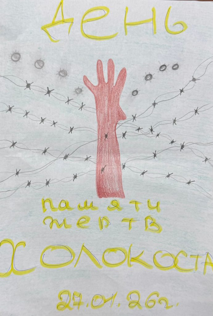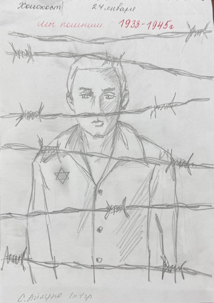 Студенты узнали о Холокосте из рассказа советника и документального фильма. Они увидели, какими ужасными были концентрационные лагеря, и испытали всю тяжесть страданий, выпавших на долю взрослых и детей. Также студенты представили свои рисунки, объяснив, какой смысл они вложили в свои работы.