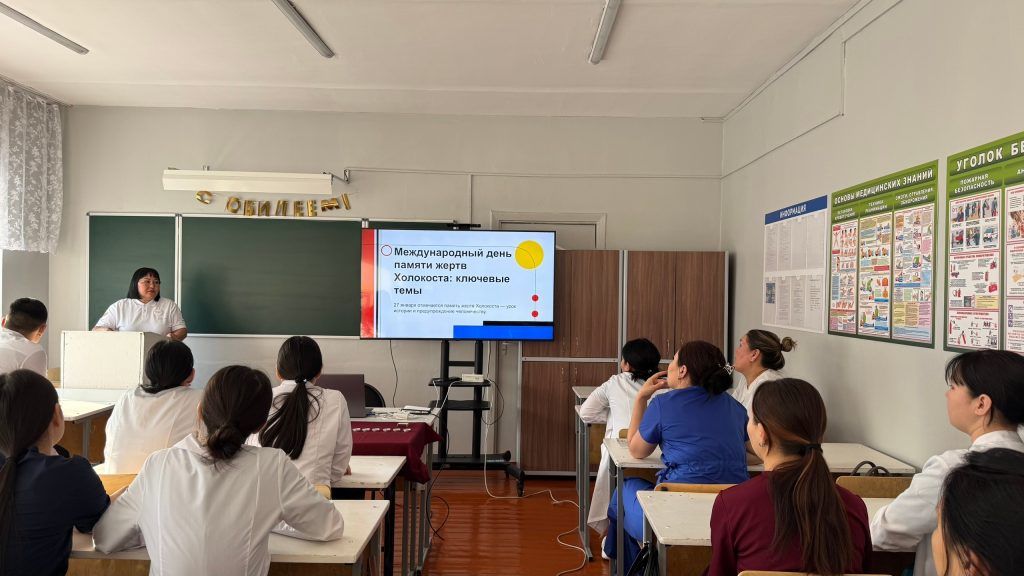 Советник директора по воспитанию Чинмит-оол С.Д. и преподаватель истории Ооржак А-С.Б. организовали мероприятие для студентов 1 курса 4 группы специальности «Сестринское дело», посвящённое Международному дню памяти жертв Холокоста. Этот день ежегодно отмечается 27 января.