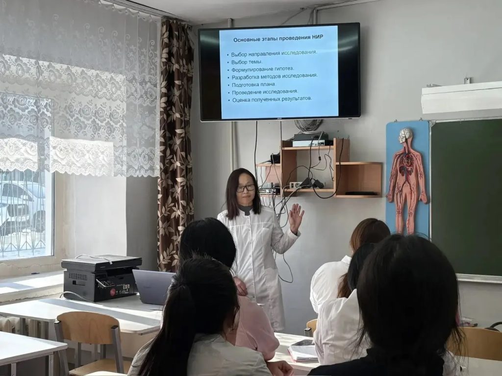 В рамках празднования Дня Российской науки кандидат медицинских наук, преподаватель клинических дисциплин Неверова-Симчит Ч. А., представила студентам медицинского колледжа лекцию на тему «Научно-исследовательская работа студентов медицинского колледжа: значение защиты курсовой работы».