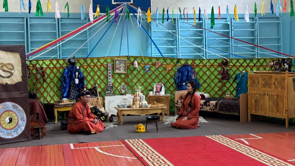 13 февраля творческий коллектив студентов Республиканского медицинского колледжа представил жюри импровизированную юрту, оснащенную полным набором предметов интерьера, инструментов и бытовых вещей, характерных для традиционной тувинской культуры. Студенты продемонстрировали элементы тувинского фольклора, включая приветственную церемонию, народные игры, творческие выступления, а также традиционные блюда и национальный костюм. Уровень артистизма исполнения позволил участникам фестиваля ярко и убедительно представить культурное богатство своего народа.