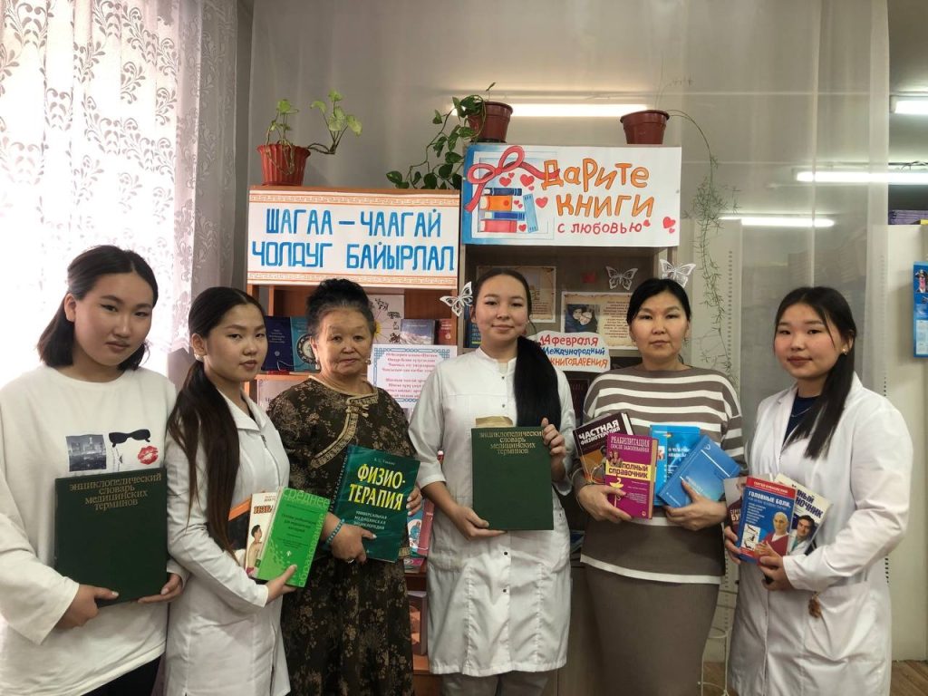 В рамках ежегодной акции «Подари книгу библиотеке» преподаватель колледжа Ондар Б.Н. и 1 курс 2 группа ЛД проявили замечательную инициативу, пополнив фонд библиотеки ценными медицинскими изданиями. Они передали 22 экземпляра книг, среди которых-энциклопедии и специализированные издания по реабилитации, физиотерапии.