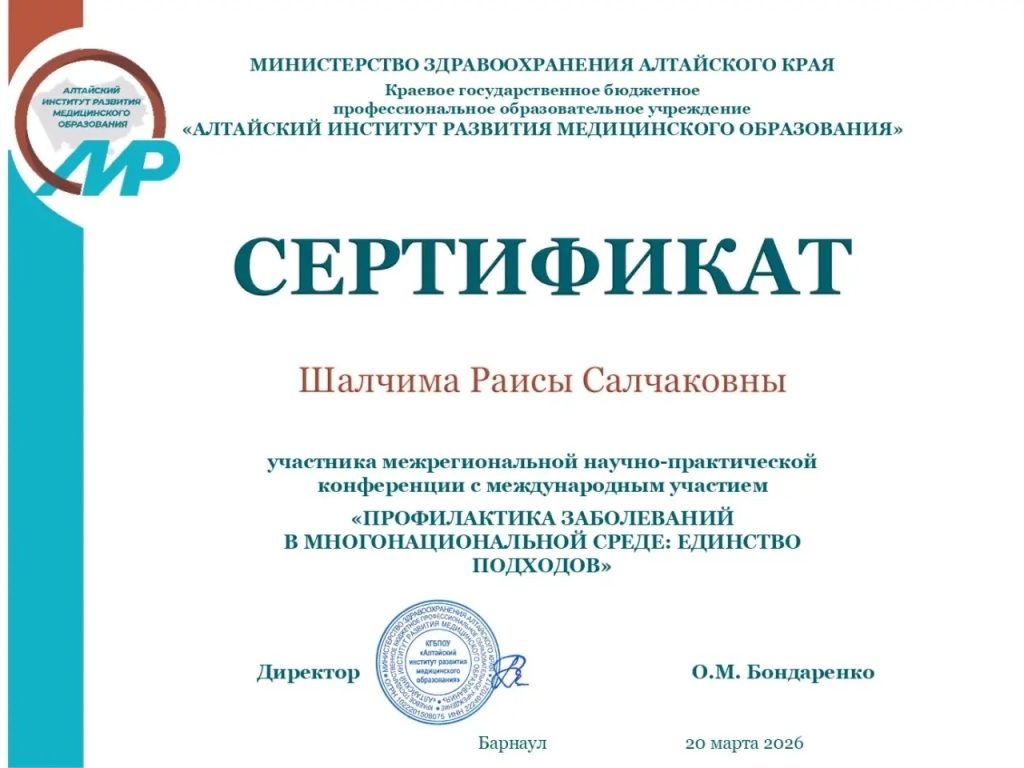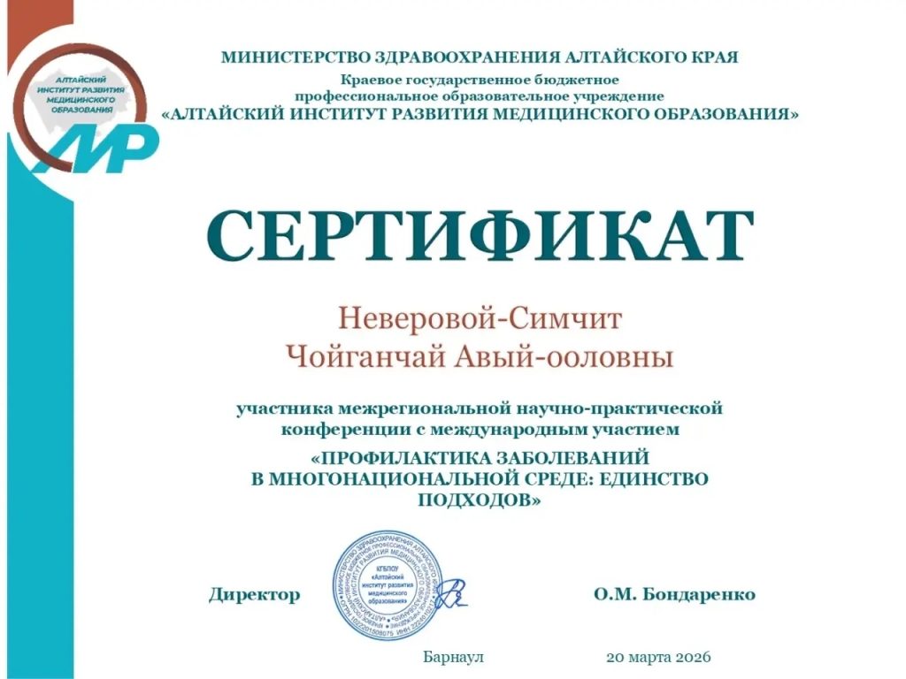 Поздравляем преподавателей клинических дисциплин нашего колледжа – Неверову-Симчит Ч.А., Шалчима Р.С. с участием в межрегиональной научно-практической конференции с международным участием «Профилактика заболеваний в многонациональной среде: единство подходов». Мероприятие проводили КГБПОУ Алтайский институт развития медицинского образования с 10 по 20 марта 2026 года. По итогам конференции вышел сборник материалов, куда вошли лучшие статьи участников – преподавателей и обучающихся из России и Казахстана. В статьях представлены результаты научно-исследовательских и проектных работ по вопросам профилактики заболеваний в многонациональных странах. Гордимся нашими коллегами!